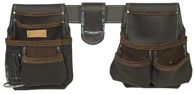 This $34 suede apron wins hands-down as our pick for the best tool belt for the money. The DeWalt DG5372 12-pocket Carpenter’s Suede Apron features 5 main pockets. It also gives you 7 small pockets and sleeves to handle pencils, pliers, snips, and similar small items.