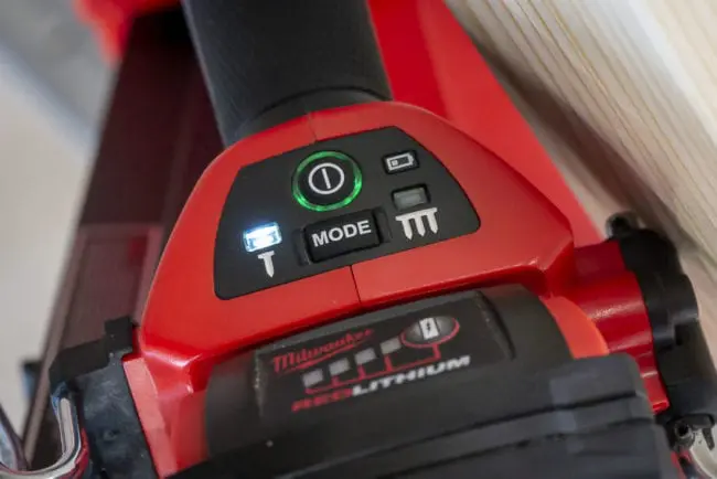 Both the Milwaukee 2744-21 and 2745-21 cordless framing nailers feature an integrated LED light positioned on the bottom which illuminates where you’re hitting. That’s not something you get with a pneumatic nailer and we don’t expect it to be a make-or-break feature, but it’s nice to have, especially on remodeling jobs.