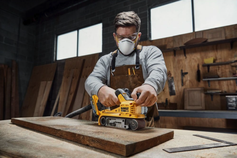 Designed with the Pros in mind, the DeWalt 20V Max XR 3×21-inch belt sander is their first offering in this category. It features a brushless motor, variable speed trigger, lock-on button, and 25 speed settings ranging from 650 to 1,050 SFPM.