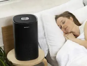 Why I Recommend It: The PuroAir 240 filters out allergens, dust, pollen, smoke—pretty much everything you don’t want to inhale. The 240 lets you clean large rooms (up to 1,115 square feet) automatically. Puroair claims this filter is lab-tested & proven to filter up to 99% of pollutants. I like the automatic feature that adjusts filtering speed based on the air quality. On manual, you get 3 different fan speeds, including a sleep mode timer with 2, 4, 6, and 8-hour increments. There’s even a filter replacement light as well as an air quality indicator light and child lock. It’s also whisper quiet and includes a 2-year warranty.