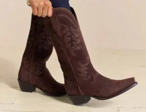 Why I Recommend It: The Annie is Tecova’s best-selling cowgirl boot. Made with water-resistant, ultra-soft deerskin throughout, it looks good and feels comfortable on your foot. Like all Annies, the design features a tall and timeless look with a beautiful tonal stitching pattern across its 14-inch shaft. At the top, a deep scallop makes for a more comfortable fit. Little things like a snip toe and signature toe stitching further add to its appeal. This boot has a distinctively classic look and opens itself up to a variety of outfits and uses.