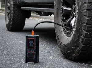 Why I Recommend It: The WolfBox MegaFlow 24 Pro Portable Tire Inflator uses a 58LPM dual-cylinder tire inflator to inflate a large 315/70R17 pickup truck tire in just 4 minutes. It fills a 185/55R14 car tire in just 35 seconds! With a 12000mAh battery and 150 PSI max pressure, it can inflate up to 20 car tires or 14 SUV tires on a single charge. The 3.5-inch LED dual display allows easy monitoring of real-time tire pressure and preset values. We like the durable threaded hose, and the 45W USB-C port lets you fully charge the inflator in just an hour. It features 12V DC and battery modes, an 11-foot power cord, and an LED light for emergencies.