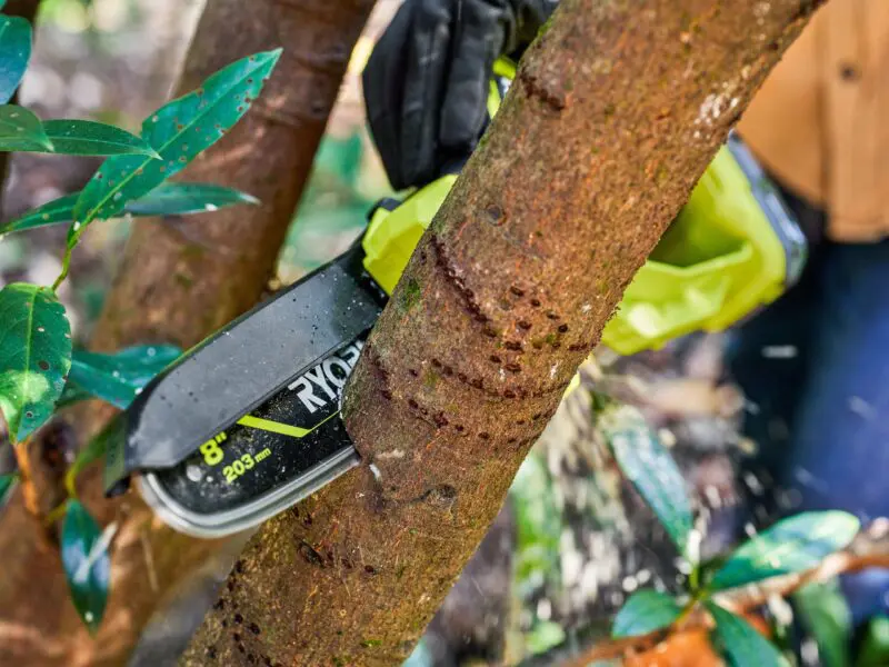 While Ryobi has had a pruning chainsaw in its 18V lineup for a while, the PSBCQW01 8-inch pruning saw offers the highest performance yet compared to past iterations. It features a brushless motor that supports an 8-inch bar and chain, letting it cut through branches up to 6 inches in diameter. Using a 2.0Ah battery, you can expect to get up to 65 cuts per charge.