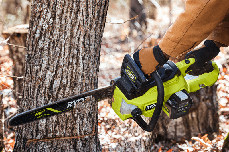 Ryobi offers several chainsaws in its 18V lineup, but this model (the RY40HPCW01) is the brand’s most powerful model to date. It delivers the same power as a 40cc gas chainsaw, and an 18-inch bar and chain lets you cut trees up to 32 inches in diameter. It includes a premium full-house chain for longer runtimes and faster cutting than we saw in previous Ryobi chainsaws. Using the kitted 6.0Ah battery, you can make up to 90 cuts on a single charge.
